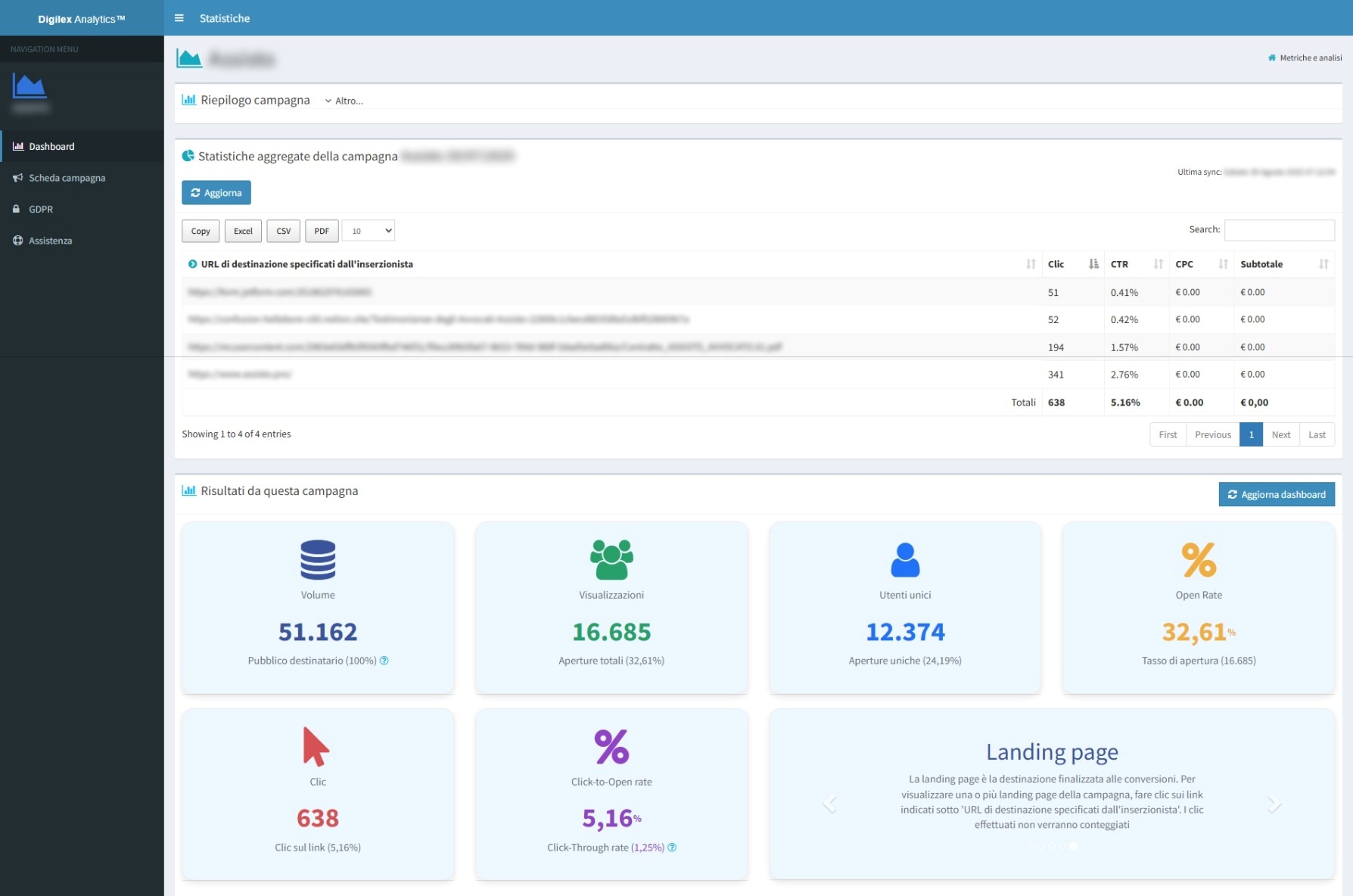 – Per le campagne Mini, Lite, Mid, Plus e CPC il cliente ha accesso diretto e immediato a un sistema di tracciamento dedicato in tempo reale.